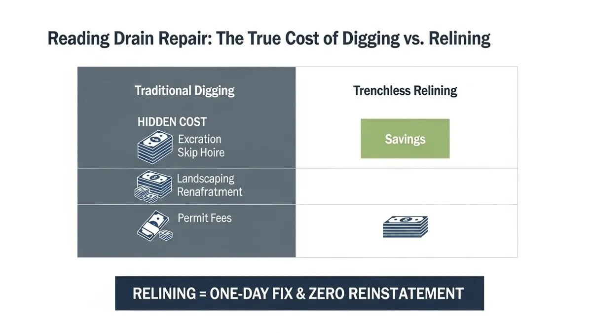 Avoid costly, messy excavations. Compare Denham Drain Relining vs Digging to save your home, time, and money with our expert, minimally invasive, and durable no-dig repair solutions for local drains.